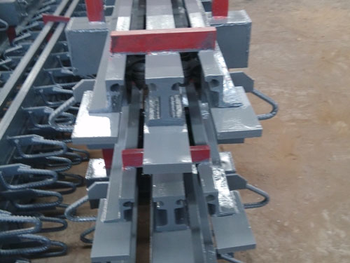 板式橡膠制品這一類伸縮裝置,很難滿足大位移量的要求;鋼制型的伸縮裝置,很難做到密封不透水,而且容易造成對車輛的沖擊,影響車輛的行駛性。因此,出現(xiàn)了利用吸震緩沖性能好又容易做到密封的橡膠材料,與強度高性能好的異型鋼材組合的,在大位移量情況下能承受車輛荷載的各類型模數(shù)支承式(模數(shù)式)橋梁伸縮裝置系列。